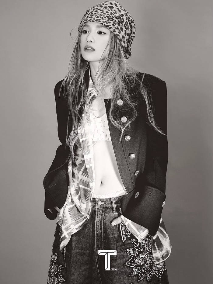 说起来,张婧仪这两年在时尚圈的表现简直像开了挂。从之前《ELLE》四月刊三奢品牌联合推封,到这次《T 锦绣》的突破性造型,她总能用不同风格刷新大家的认知。这次封面特意选了橘色头发,要知道这种高饱和色超挑肤色,可她硬是靠清冷的五官和利落的线条撑住了,配上做旧牛仔套装,既有少女的鲜活感,又带着成年人的锐利锋芒。摄影师镜头下的她,时而坐在岩石上眼神坚定,时而仰头望向天空,每一张都像在讲一个“不被定义”的故事。